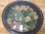 Grilled chicken, hot sauce, broccoli, roasted peppers, onion and garlic.